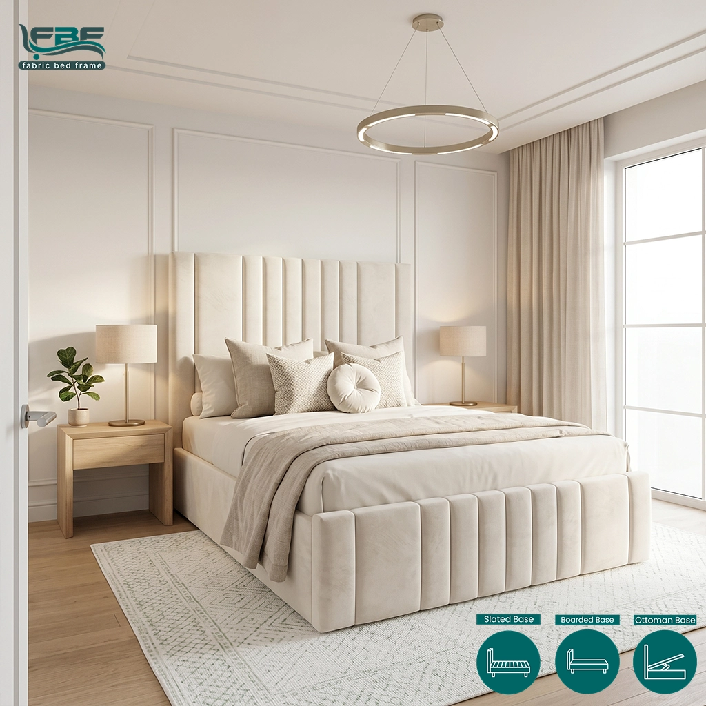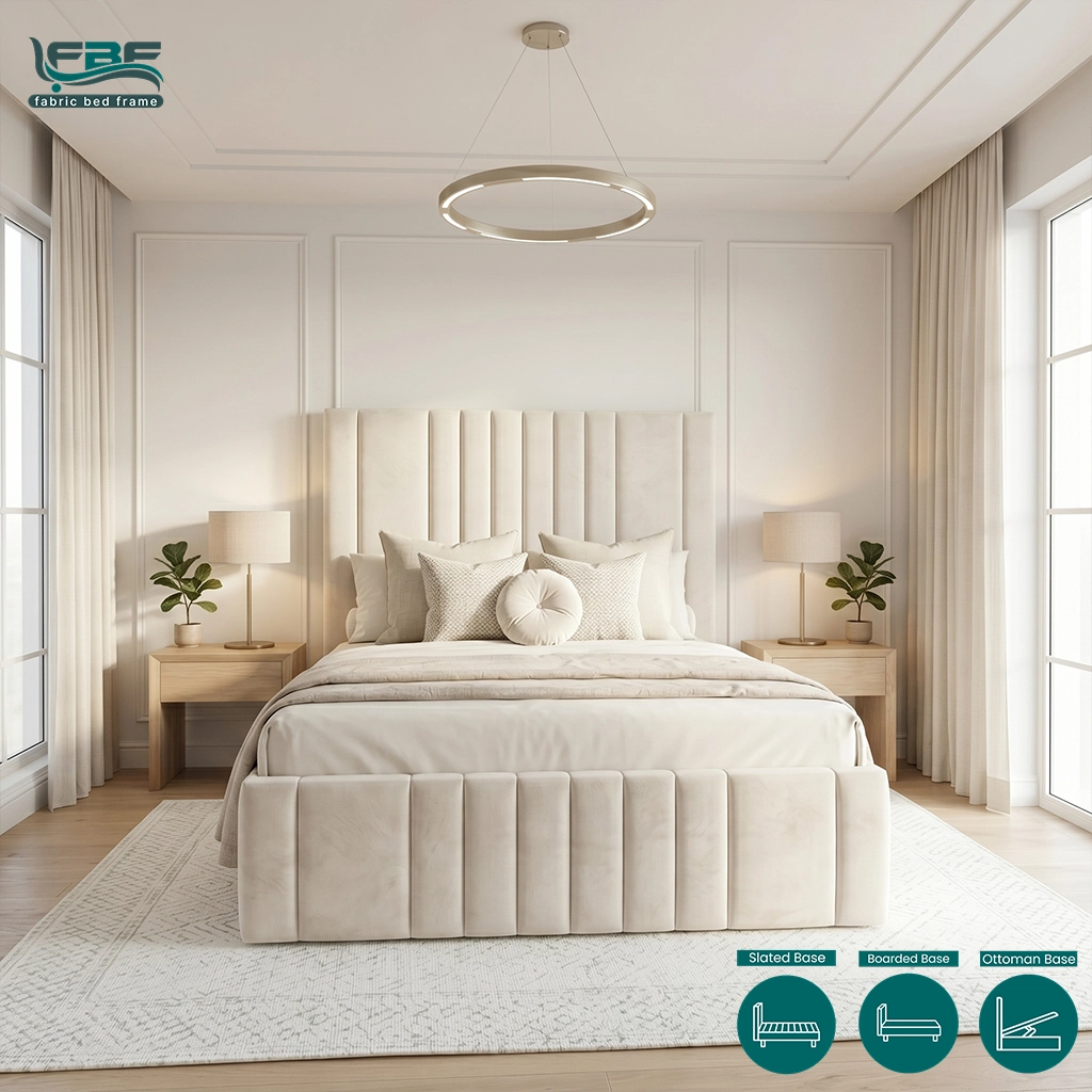 The Vertical Channel Upholstered Bed Frame features elegant vertical stitching, premium fabric upholstery, and versatile ottoman or divan storage options. Built for durability and style, it delivers comfort and practicality while enhancing any modern bedroom.